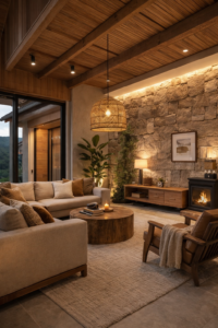 A planta baixa humanizada apresenta a organização dos ambientes de forma mais visual e intuitiva, com indicação de mobiliários, cores e texturas. Essa representação facilita a compreensão da distribuição dos espaços, permitindo visualizar melhor a circulação e o funcionamento da casa antes da execução.